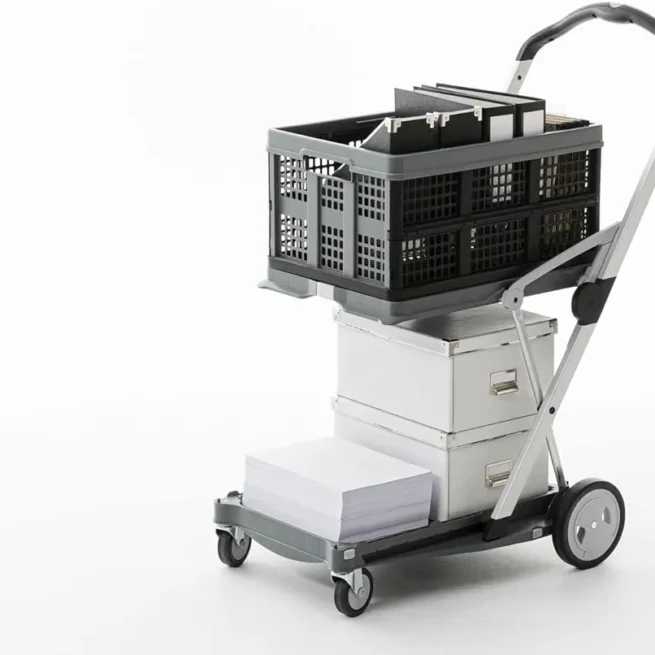 The innovative mobile transport cart is versatile and can be put into use in the private as well as commercial sector. It is particularly well suited for transport in the service area, for shopping, for the transport of goods, for technicians and dealers or in the internal circulation of mail.